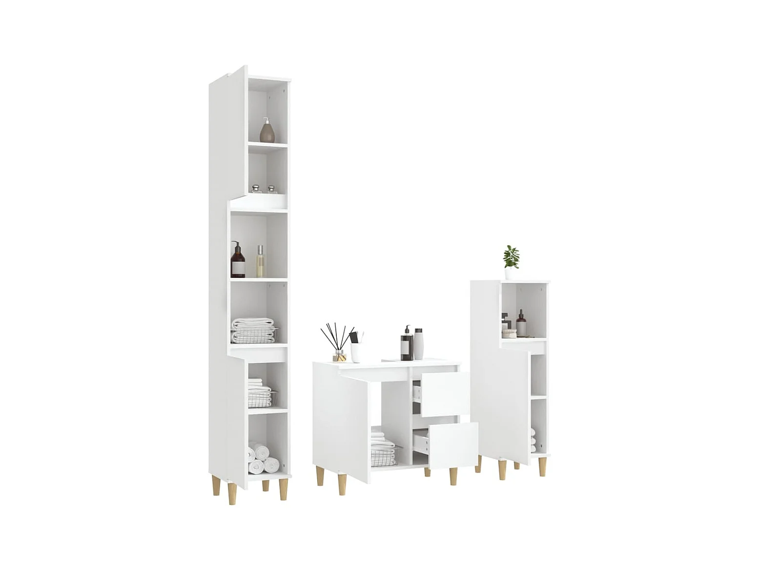 3 pcs conjunto móveis casa de banho madeira processada branco PT500948