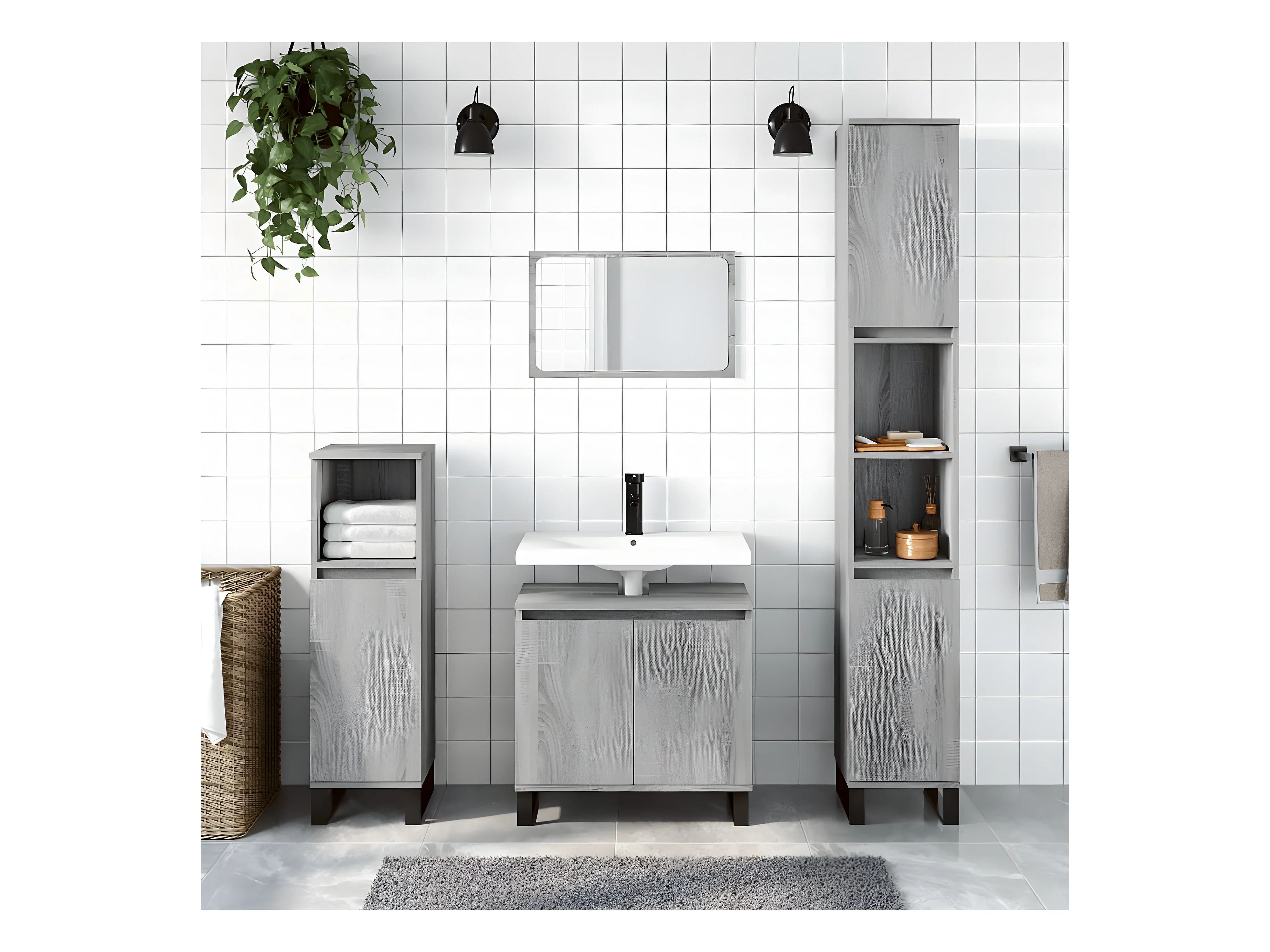 4 pcs conj. móveis casa de banho derivados madeira cinza sonoma PT930719