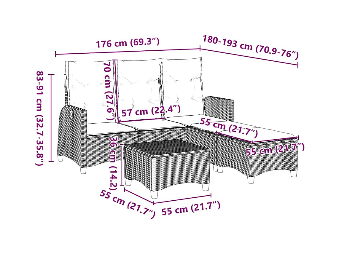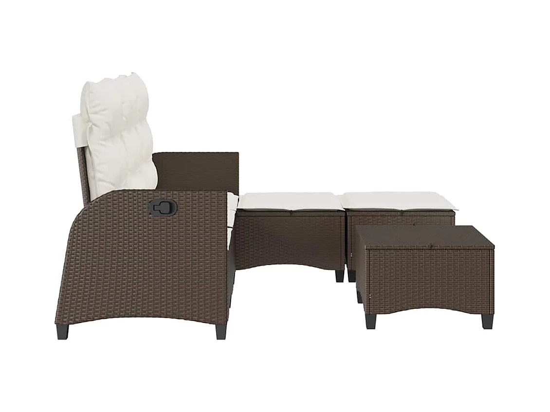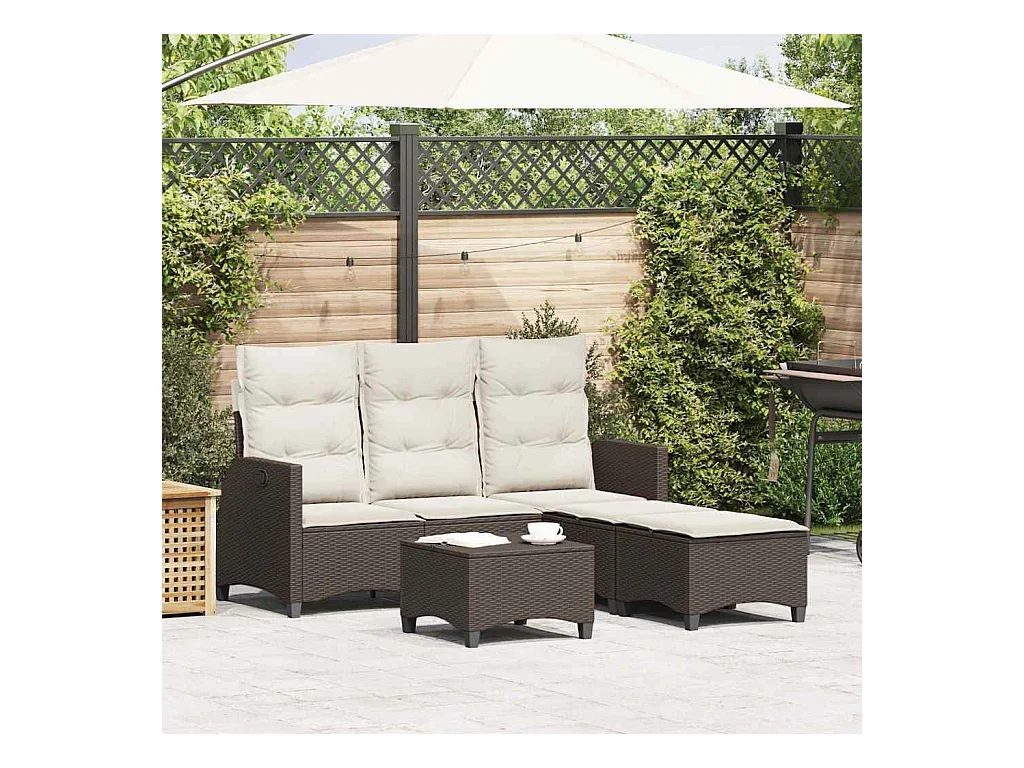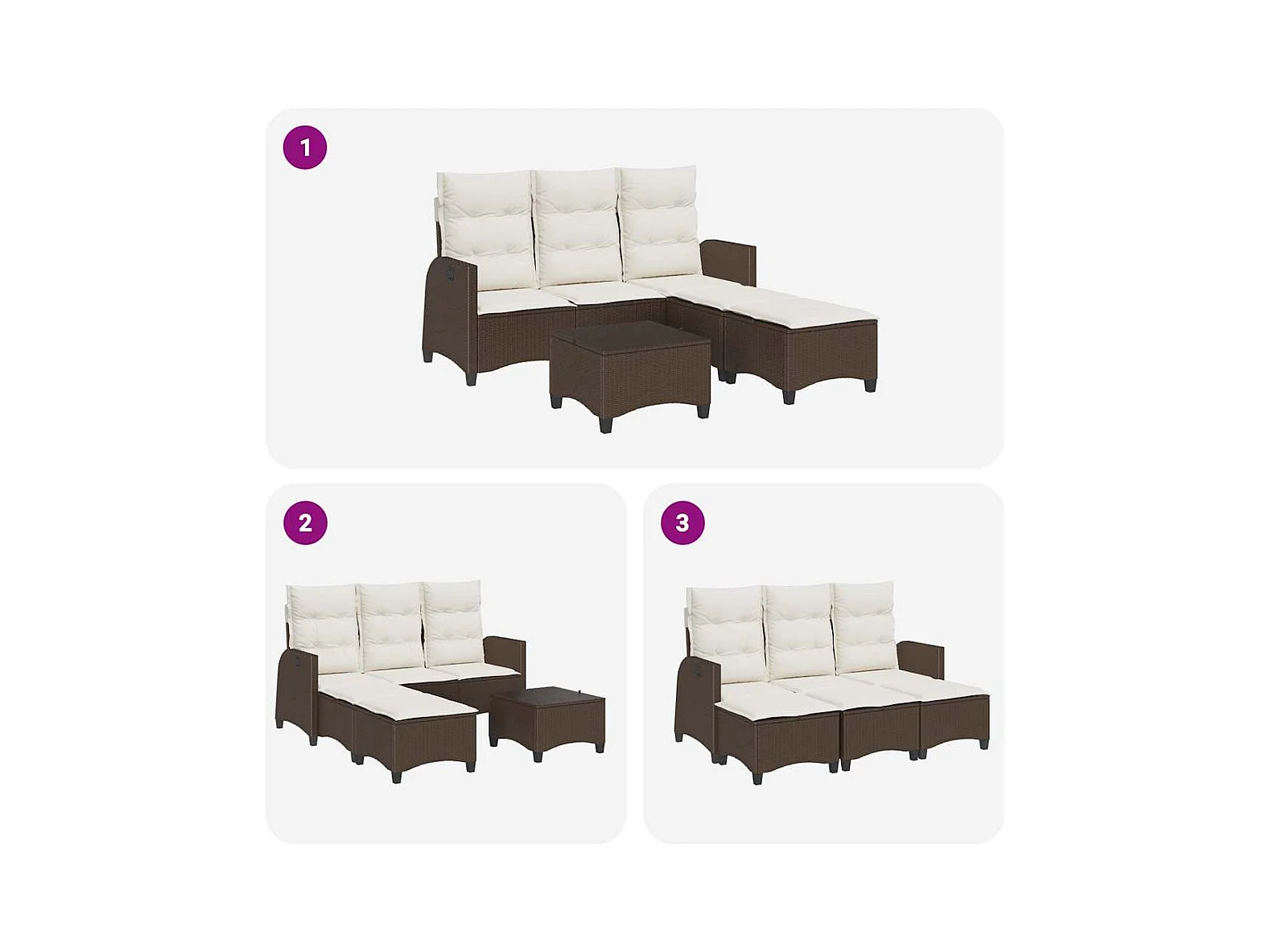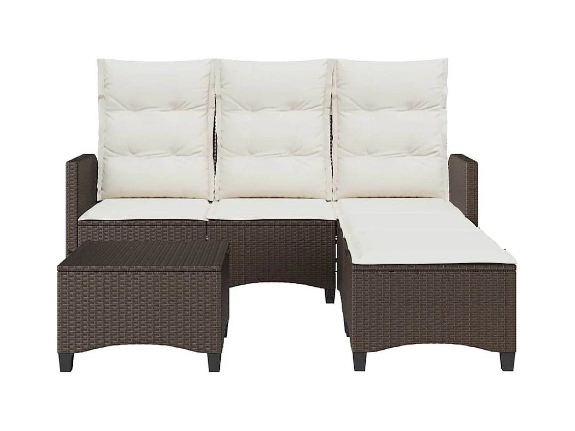 4 pcs conjunto lounge jardim c/ almofadões vime PE castanho
