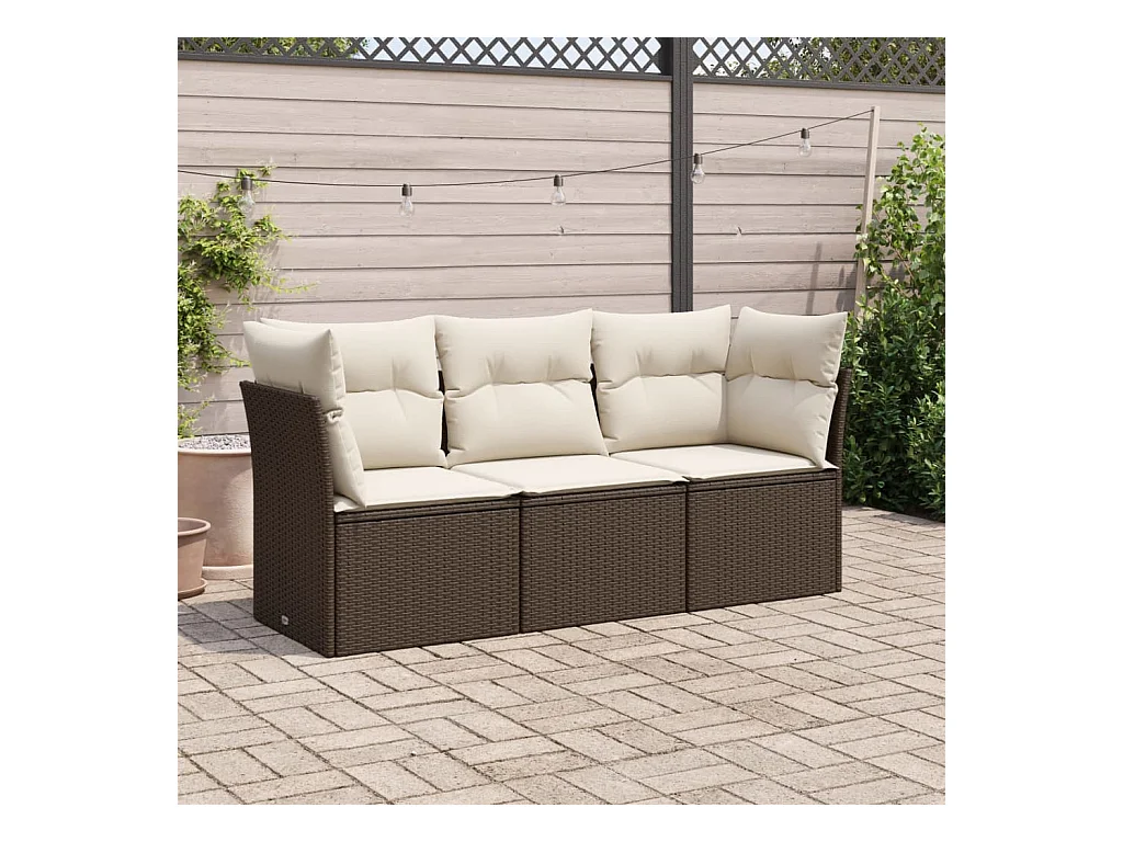 3 pcs conjunto sofás de jardim com almofadões vime PE castanho PT923282