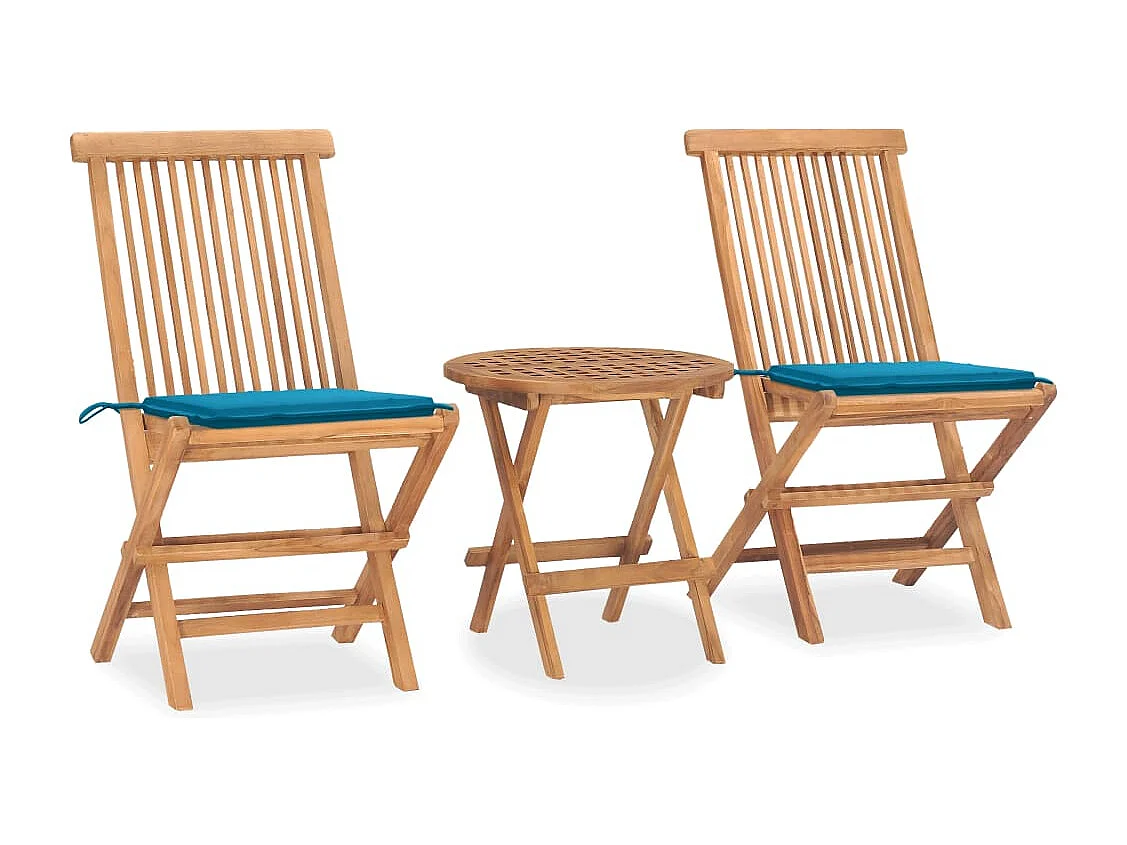 3 peças conj. jantar dobrável exterior c/ almofadão teca maciça