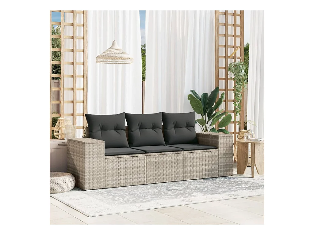 3 pcs conjunto sofás de jardim c/ almofadões vime PE cinzento PT587332