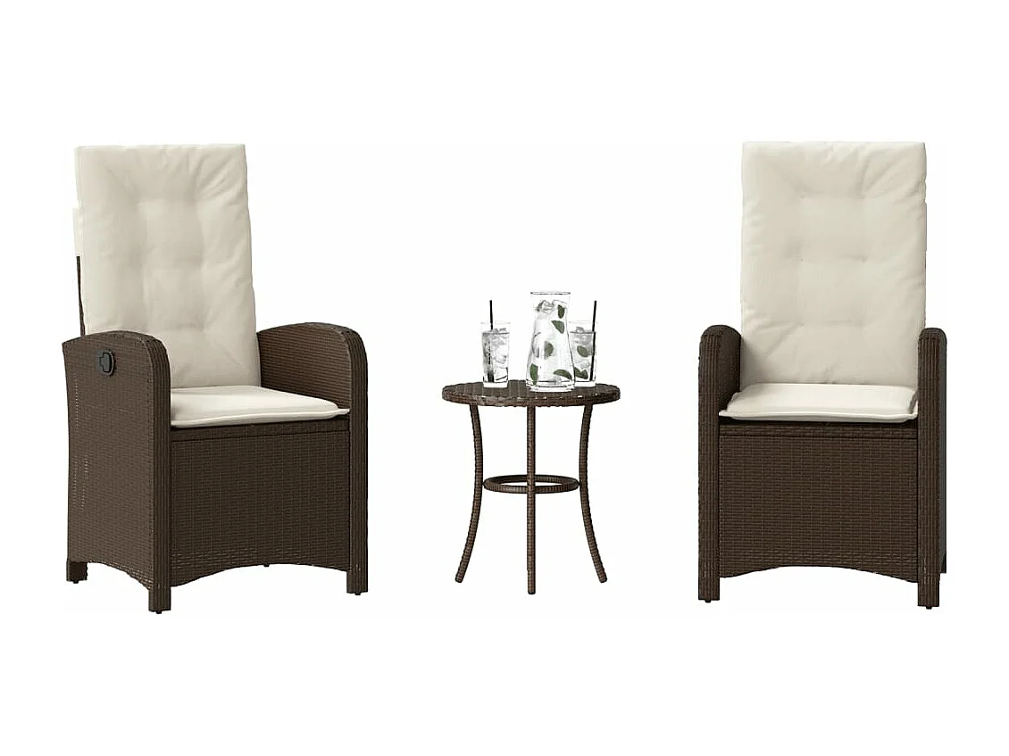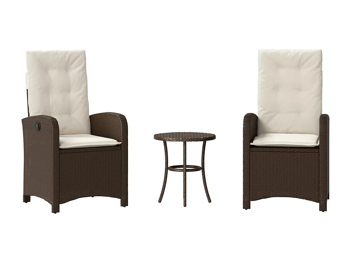 3 peças conjunto bistrô com almofadões vime PE castanho