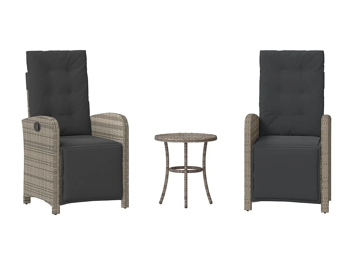 3 peças conjunto bistrô com almofadões vime PE cinza