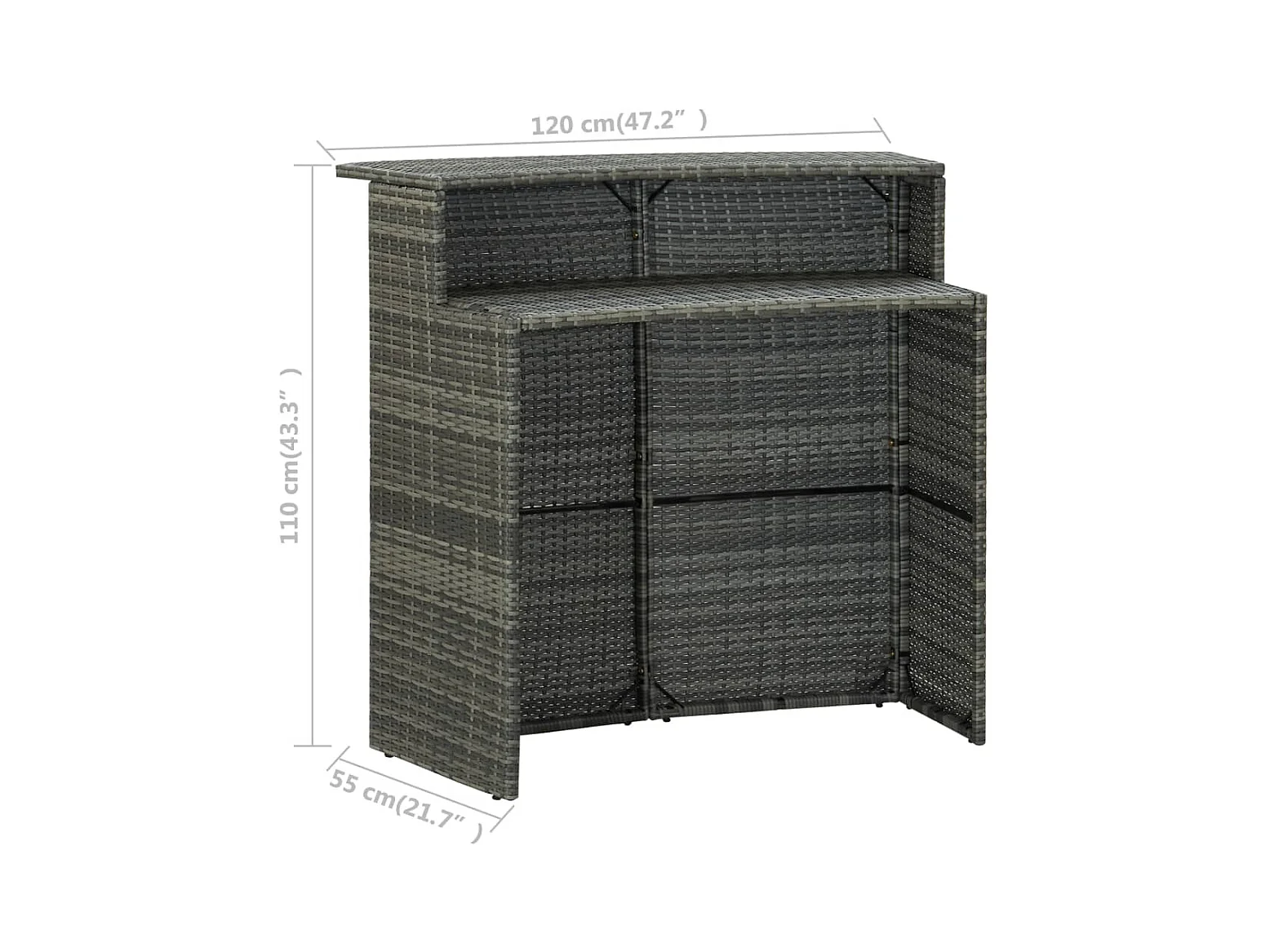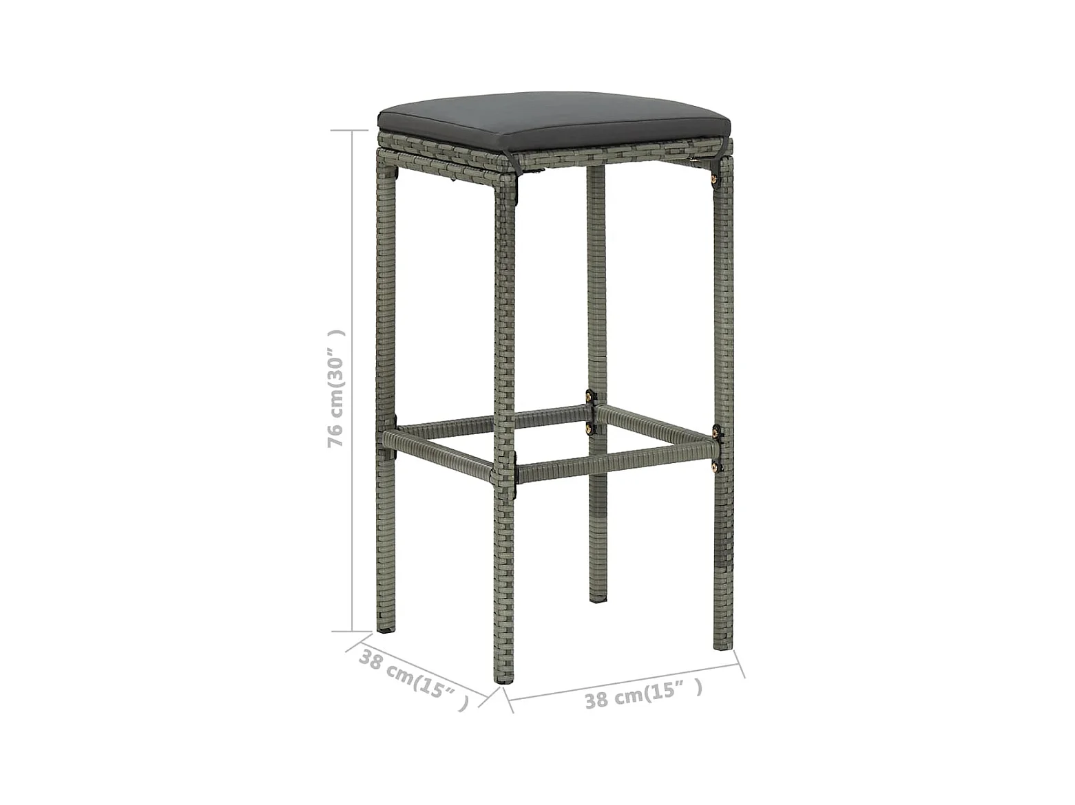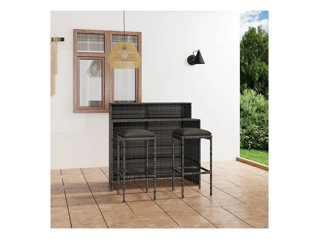 3 peças conjunto de bar para jardim com almofadões cinzento