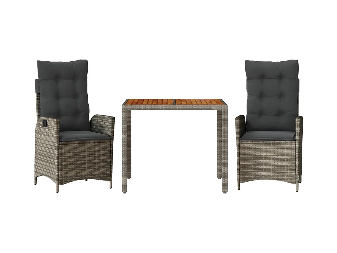 3 peças conjunto jantar jardim com almofadões vime PE/acácia cinza