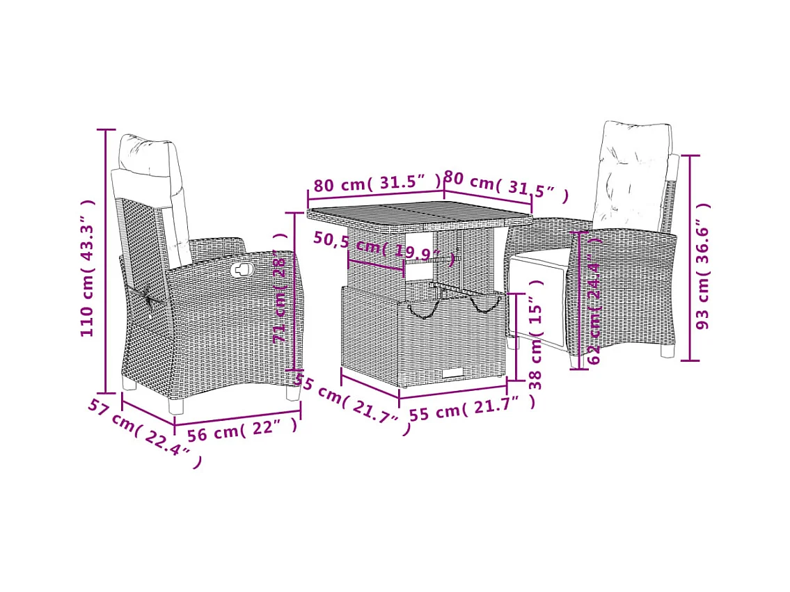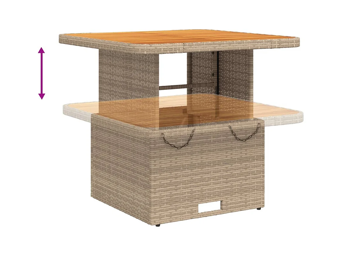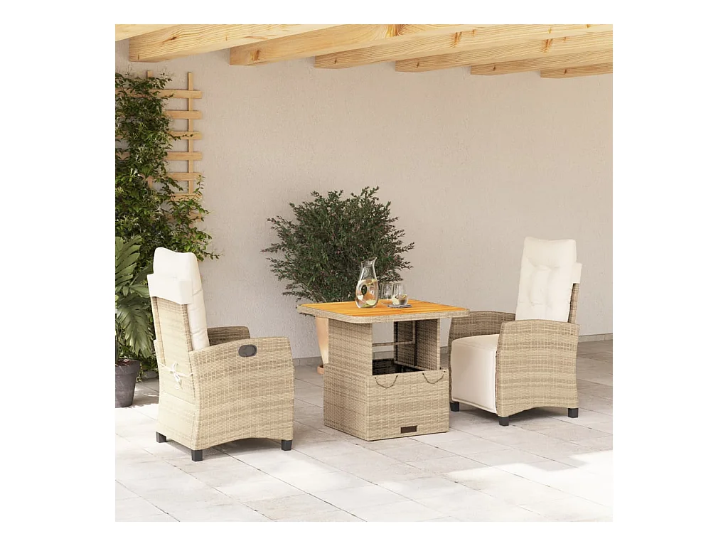 3 peças conjunto jantar jardim com almofadões vime PE/acácia bege