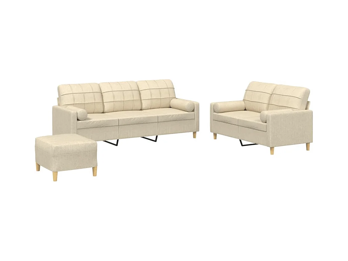 3 peças conjunto de sofás com almofadas tecido cor creme