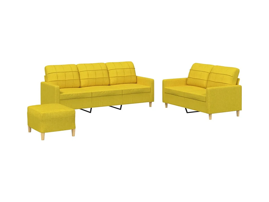 3 peças conjunto de sofás com almofadões tecido amarelo-claro