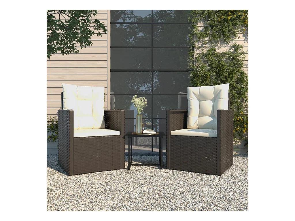 2 pcs conjunto lounge de jardim c/ almofadões vime PE preto PT38209