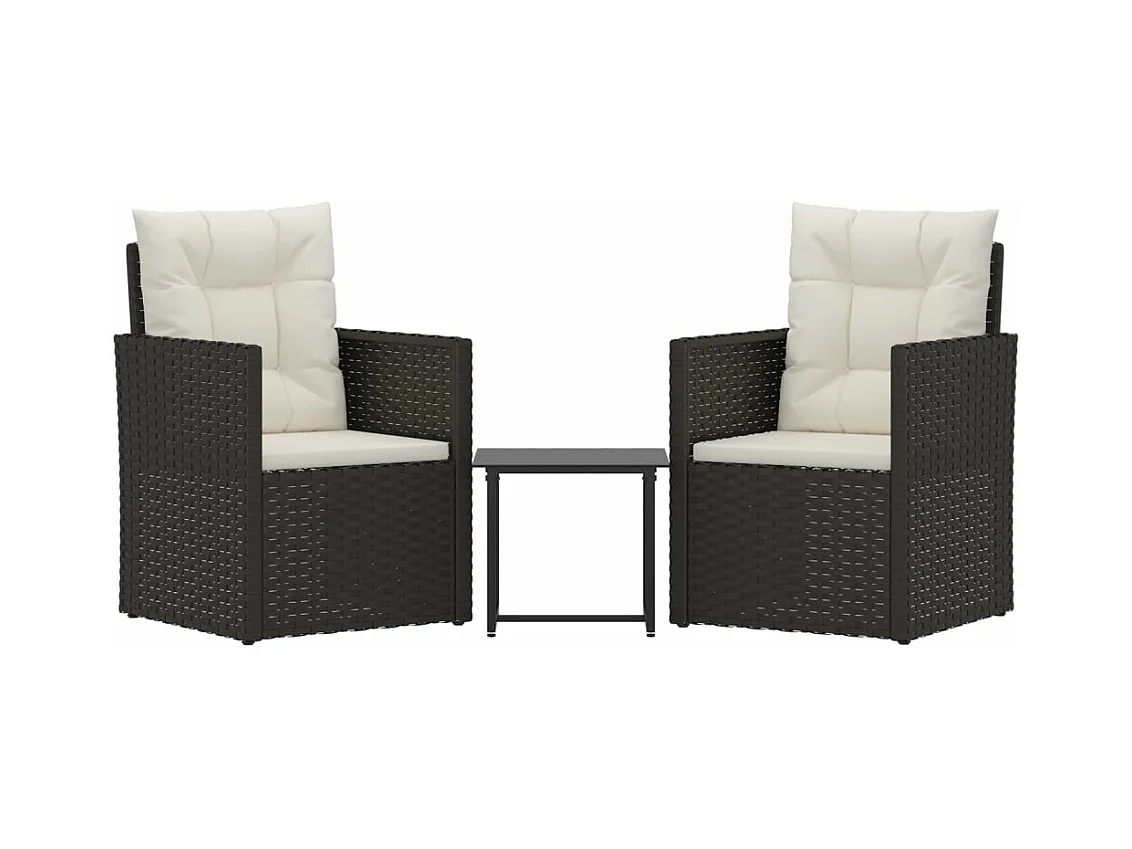 3 pcs conjunto sofás de jardim com almofadões vime PE preto PT921477