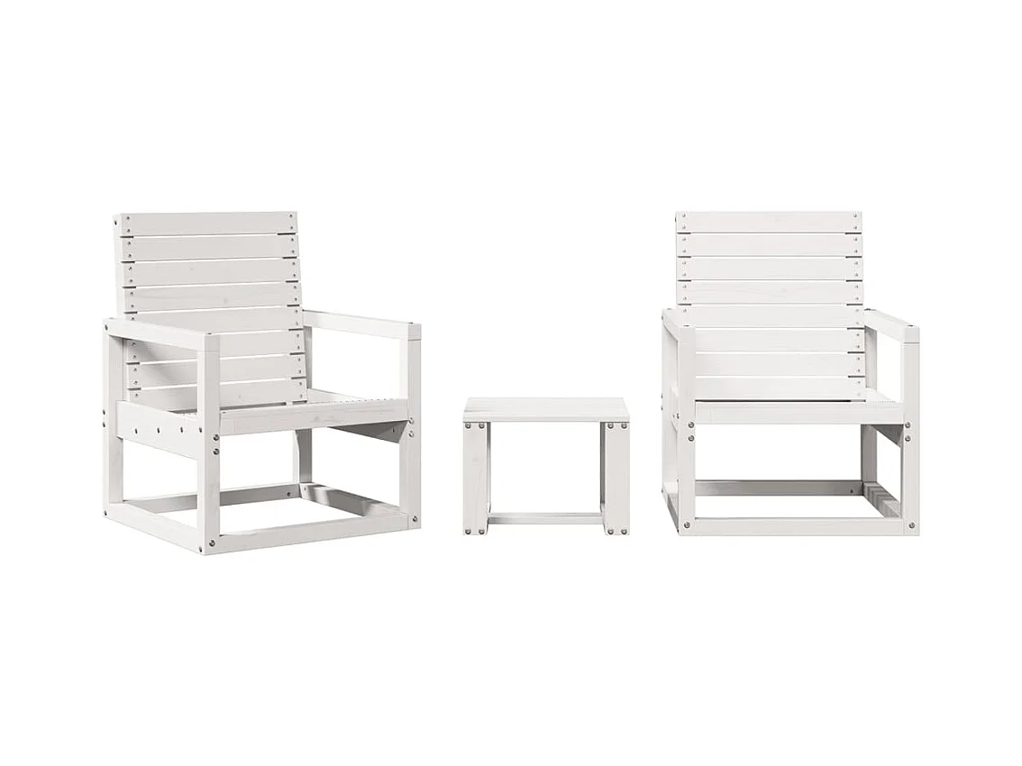 3 peças conjunto lounge de jardim madeira de pinho maciça branco