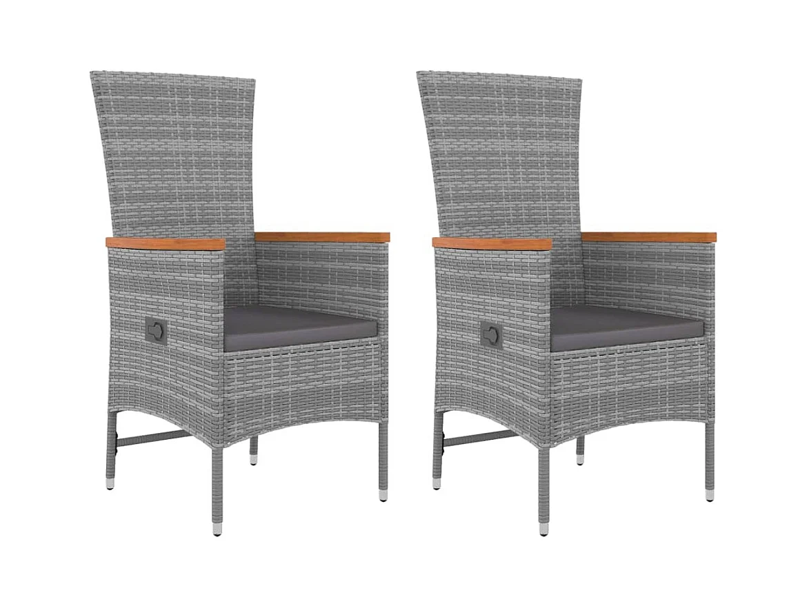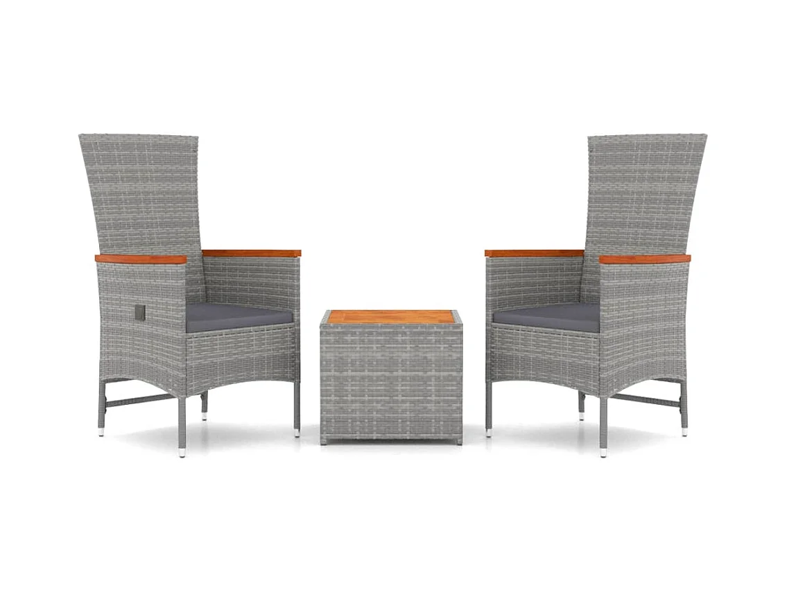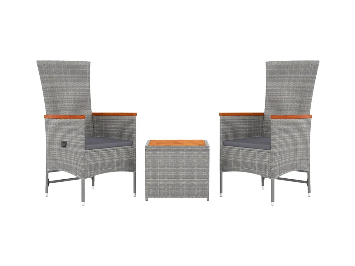 3 peças conjunto lounge de jardim vime PE/acácia maciça cinza