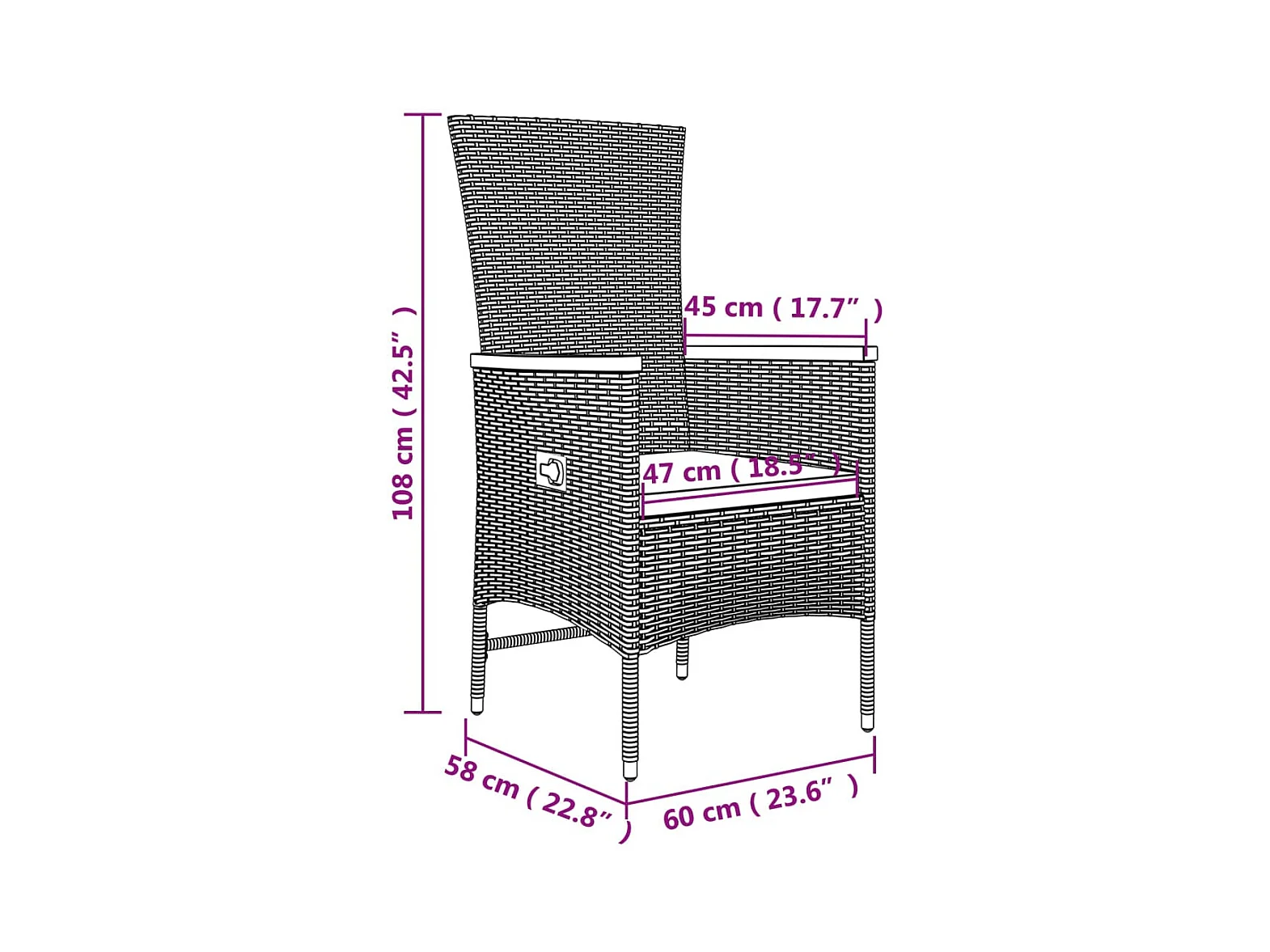 5 peças conjunto de jantar para jardim com almofadões cinzento