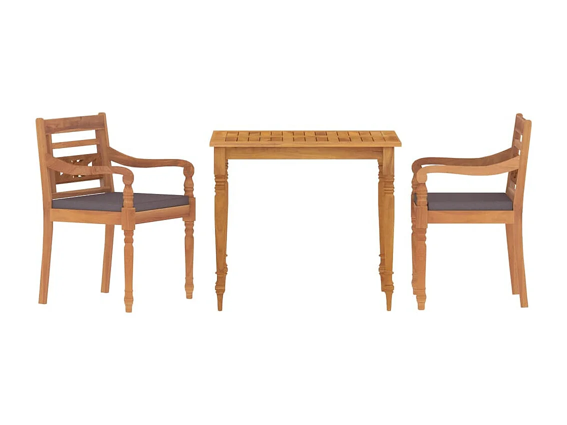 3peças conj.jantar p/jardim c/almofadões cinza-escuro teca maciça