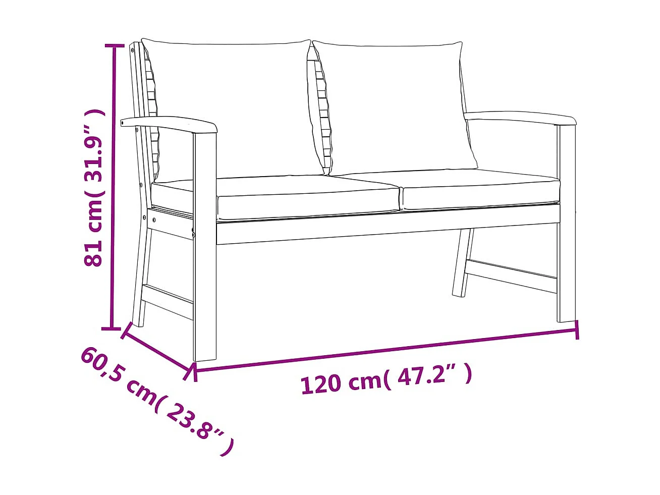 4 pcs conj. lounge jardim c/ almofadões cor creme acácia maciça