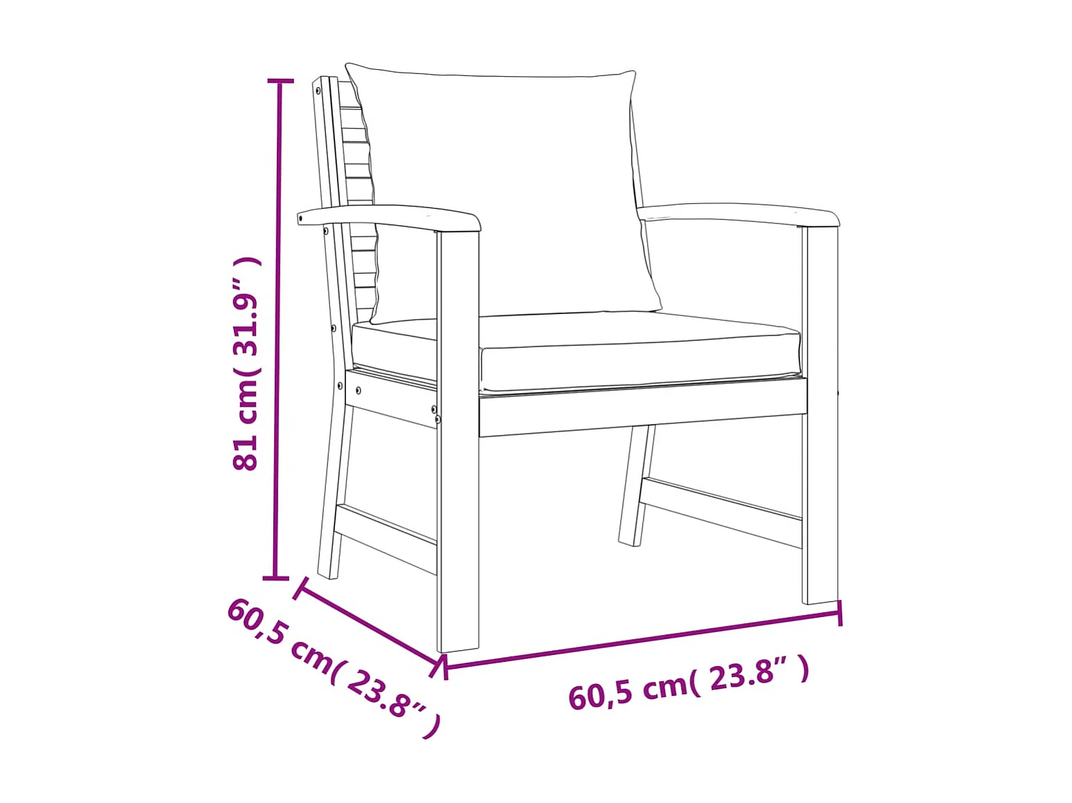 4 pcs conj. jantar jardim c/ almofadões madeira acácia maciça