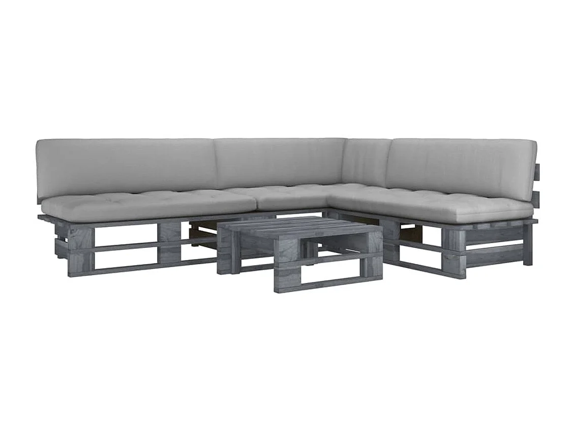 4 pcs conj. lounge paletes c/ almofadões pinho impregnado cinza