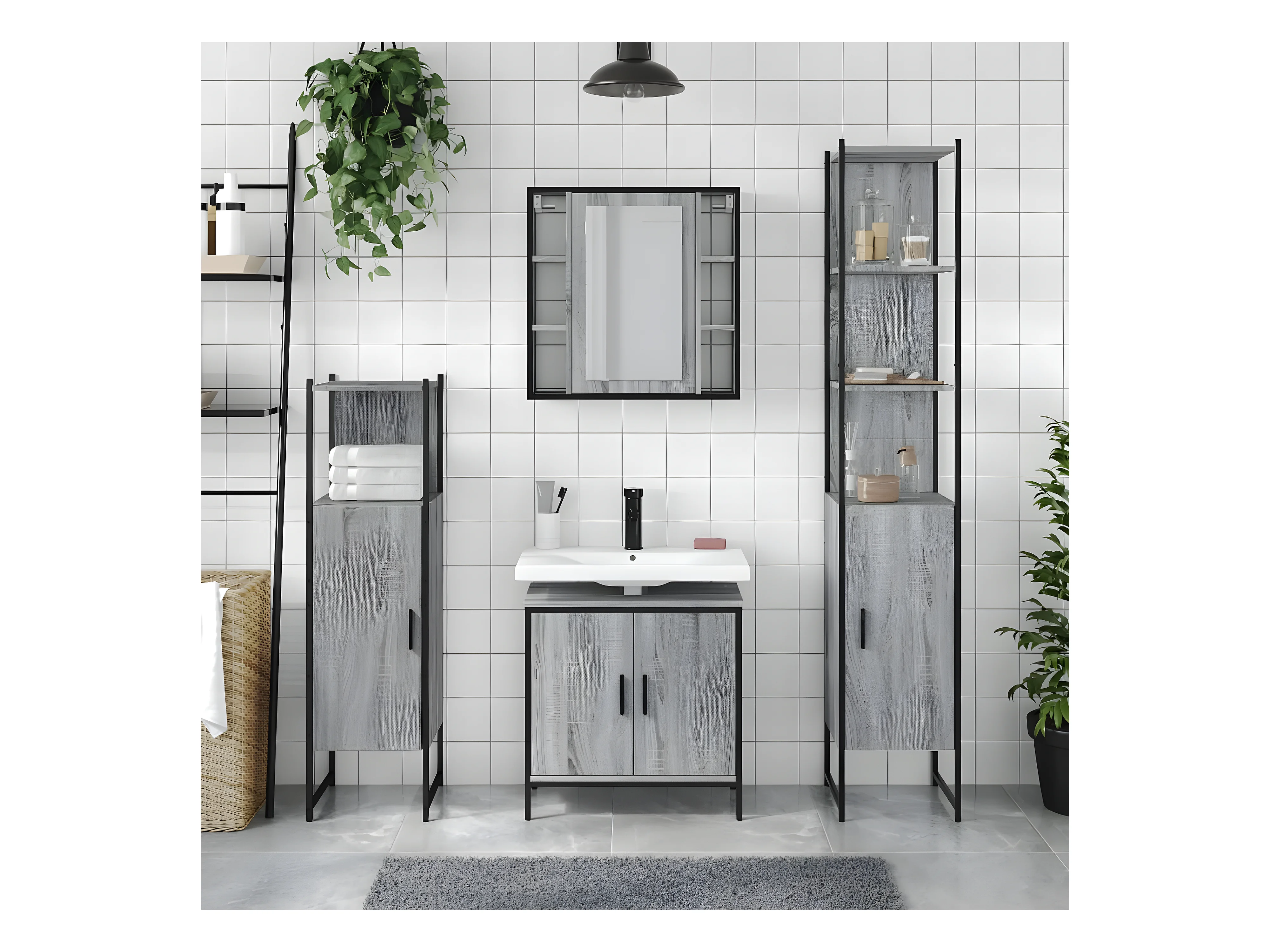 4 pcs conj. móveis casa de banho derivados madeira cinza sonoma PT682989