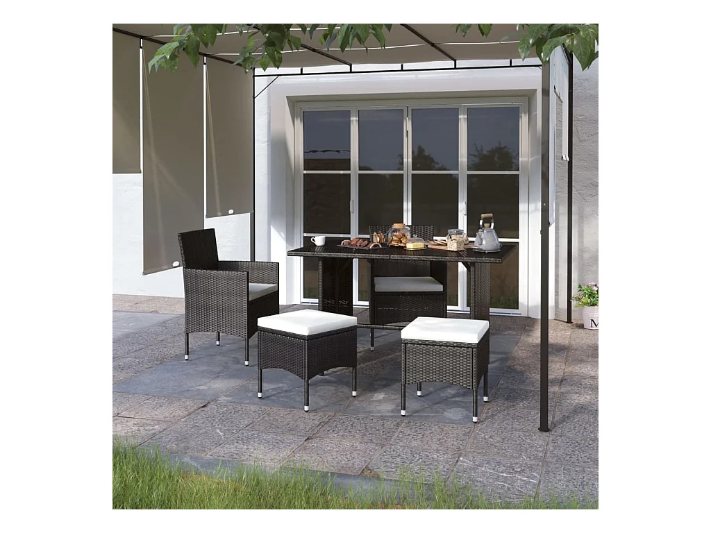 4 pcs conjunto de cadeiras e bancos de jardim vime PE preto PT141475