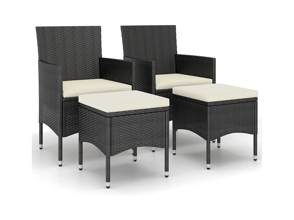 4 pcs conjunto de cadeiras e bancos de jardim vime PE preto PT233250