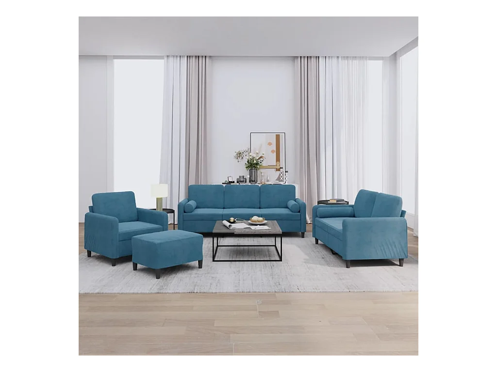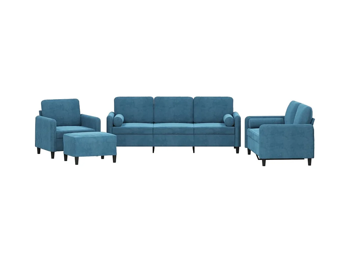 4 pcs conjunto de sofás com almofadas veludo azul