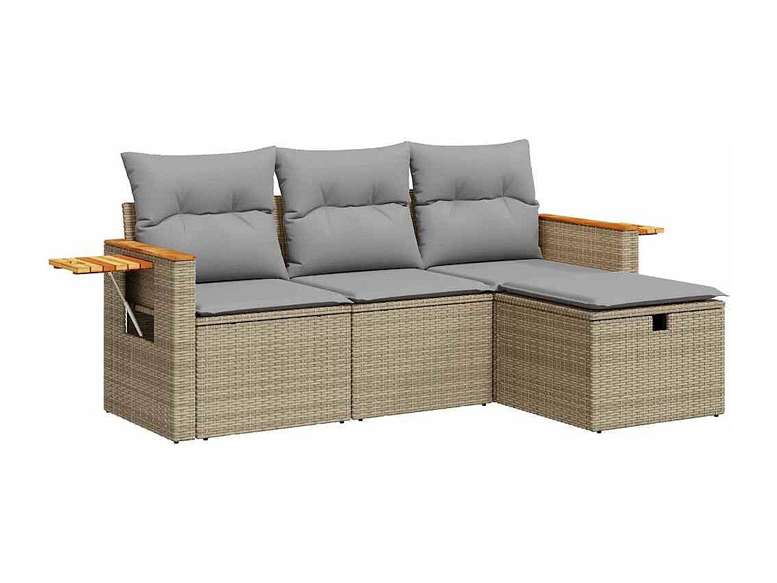 4 pcs conjunto de sofás para jardim c/ almofadões vime PE bege