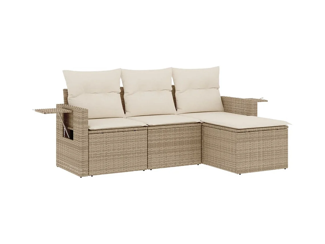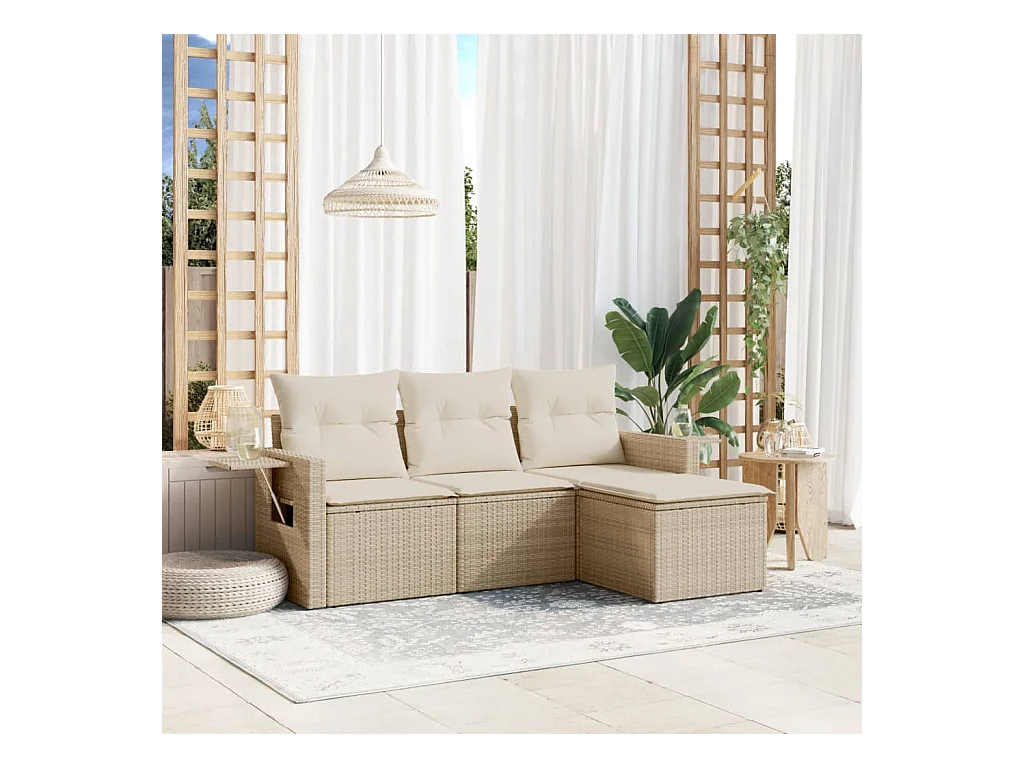 4 pcs conjunto de sofás para jardim c/ almofadões vime PE bege PT286281