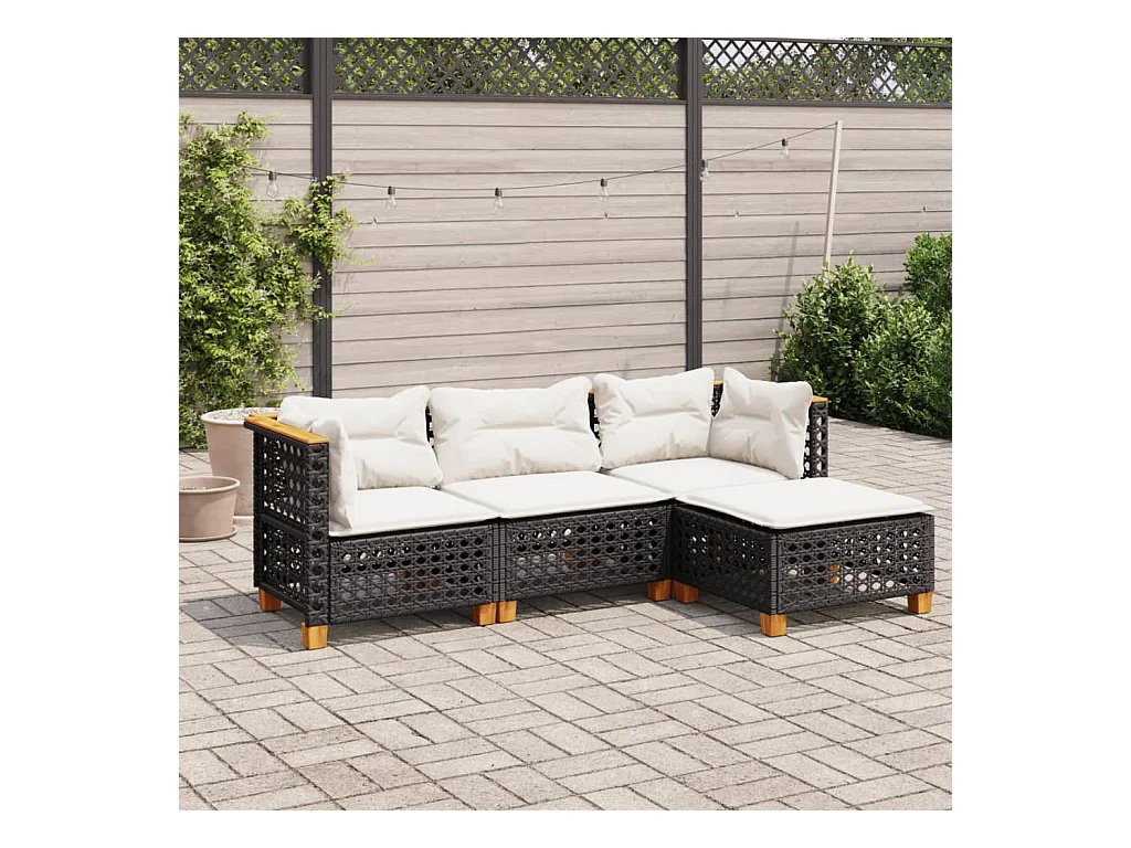 4 pcs conjunto de sofás para jardim c/ almofadões vime PE preto PT762062
