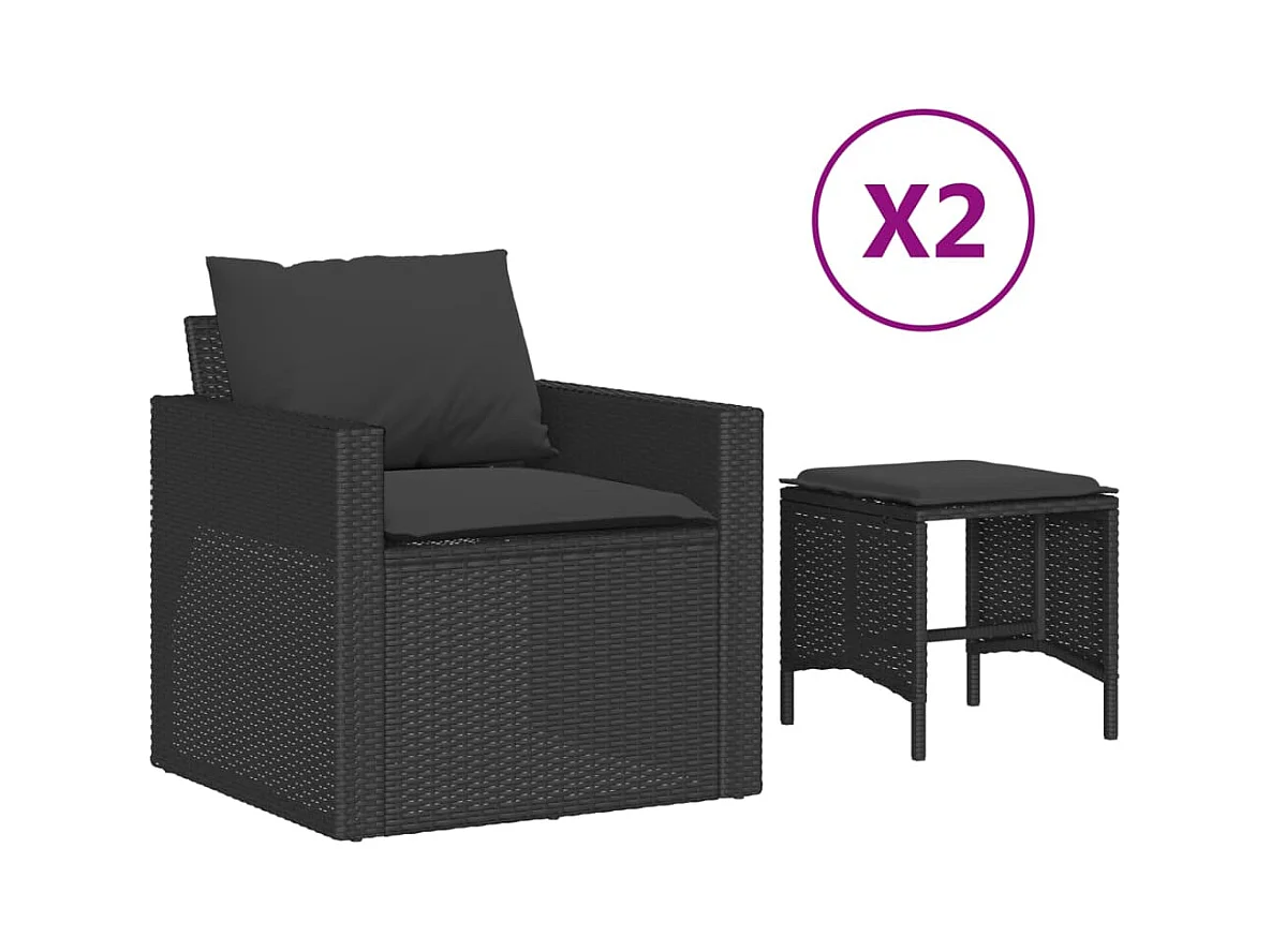4 pcs conjunto lounge de jardim vime PE preto e cinzento PT399167