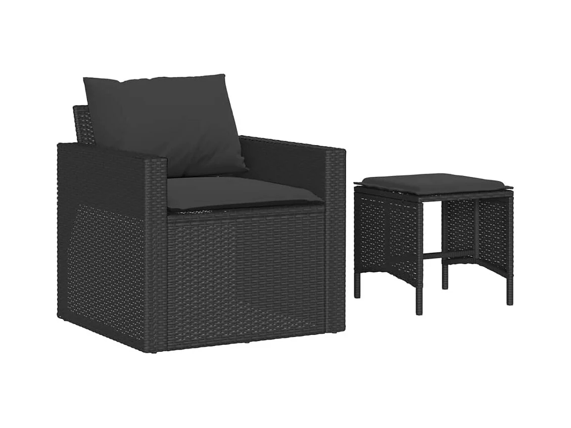 4 pcs conjunto de sofás para jardim c/ almofadões vime PE preto PT935378