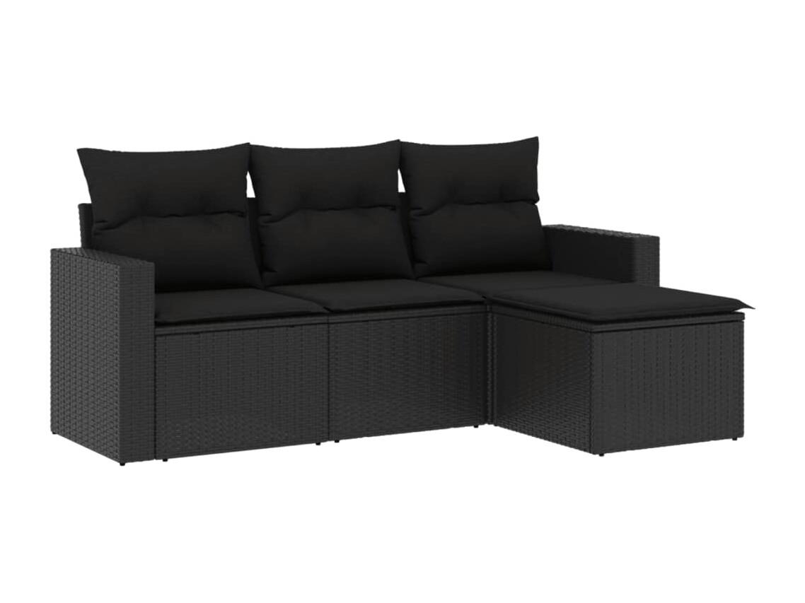 4 pcs conjunto de sofás para jardim c/ almofadões vime PE preto PT186684