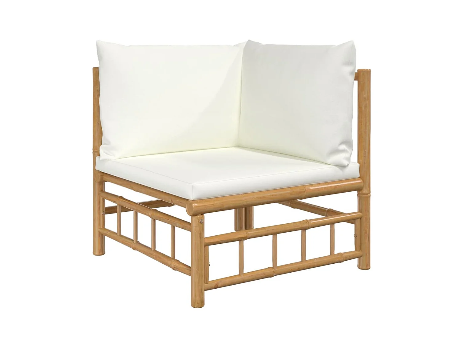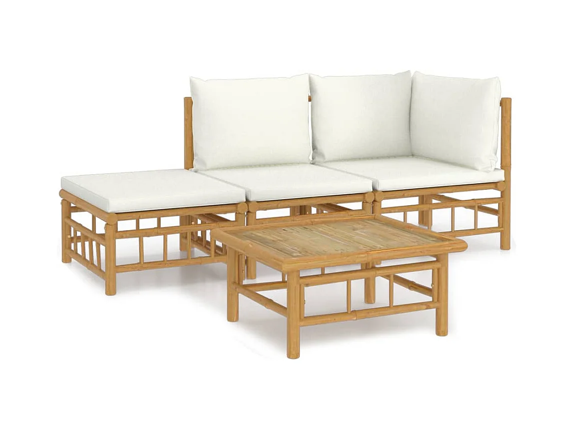 4 pcs conjunto lounge de jardim bambu c/ almofadões branco nata