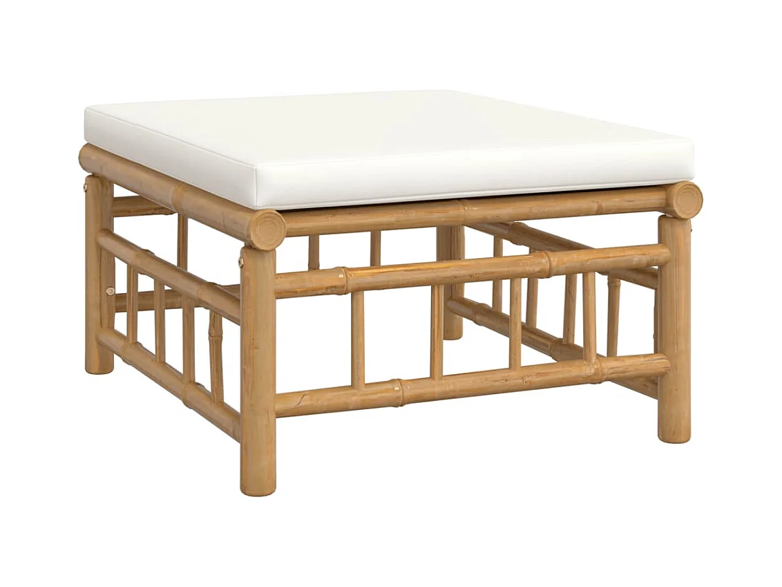 6 pcs conjunto lounge de jardim bambu c/ almofadões branco nata
