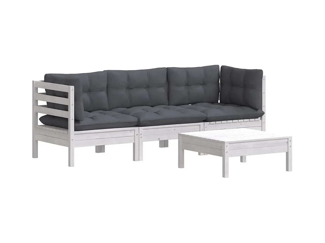 4 pcs conjunto lounge de jardim c/ almofadões pinho antracite