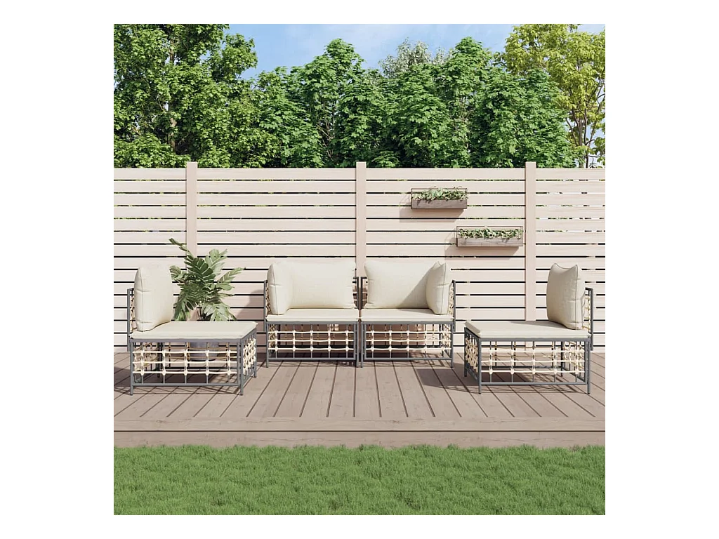 4 pcs conjunto lounge de jardim c/ almofadões vime PE antracite PT956327