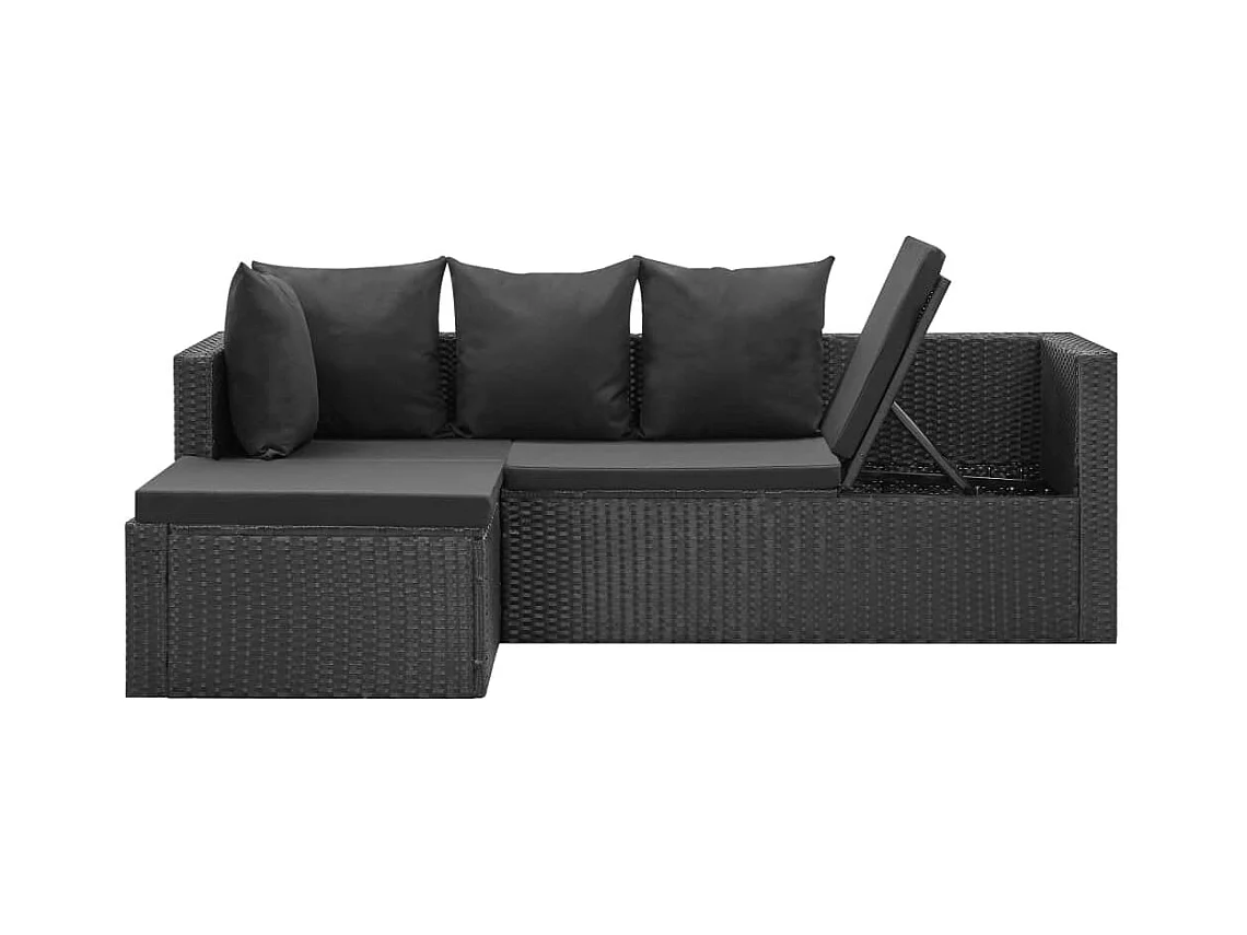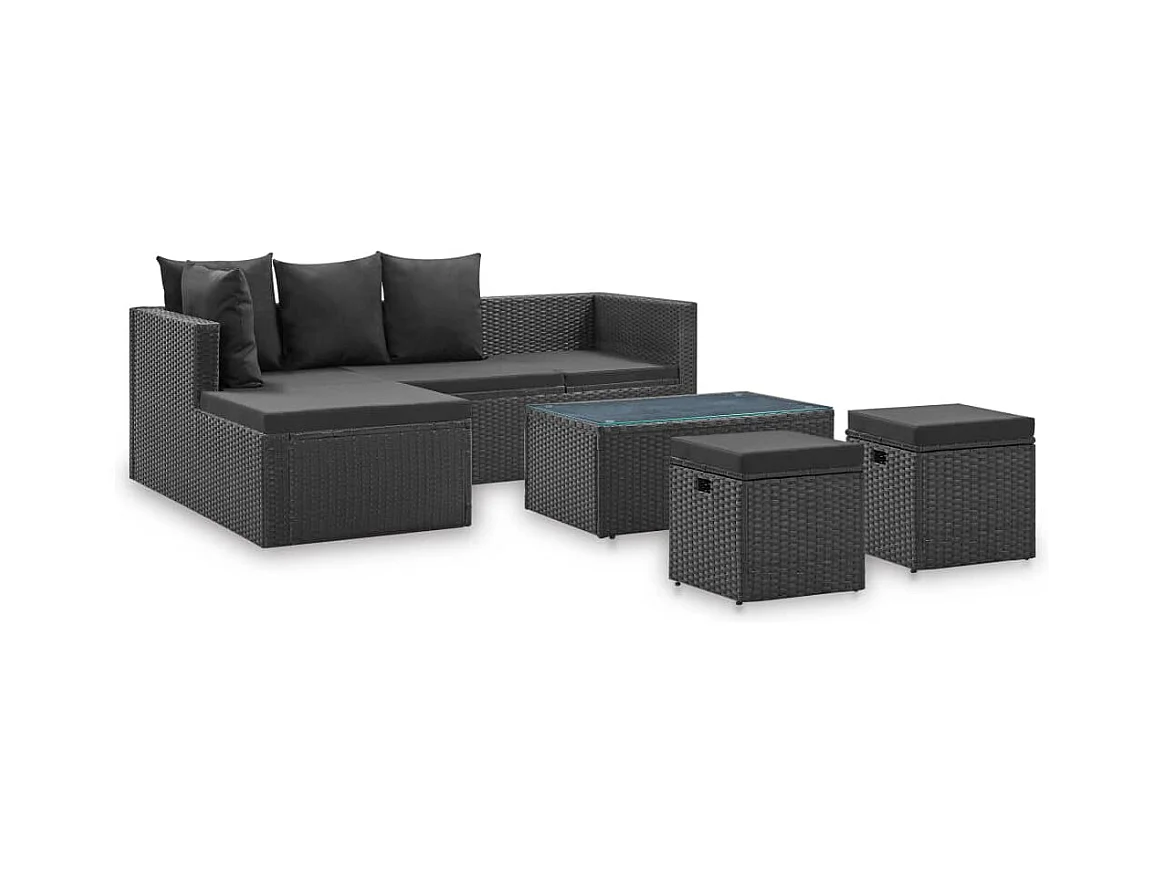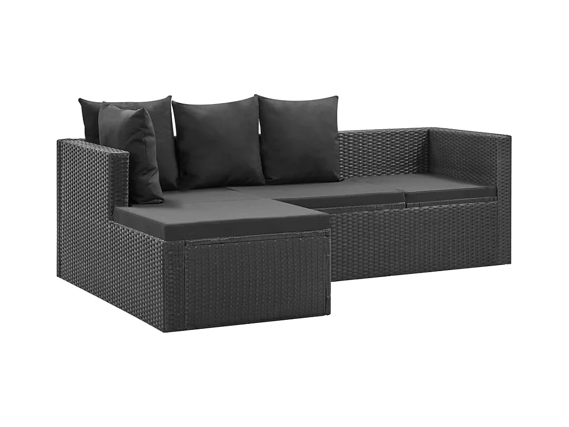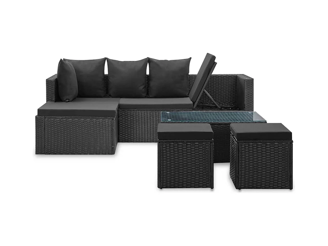 4 pcs conjunto lounge de jardim c/ almofadões vime PE preto