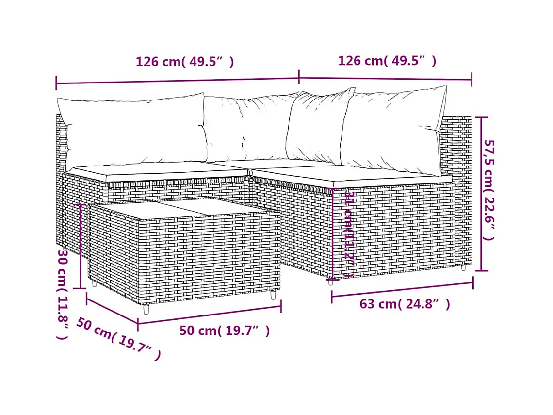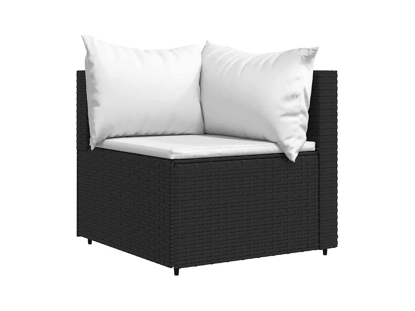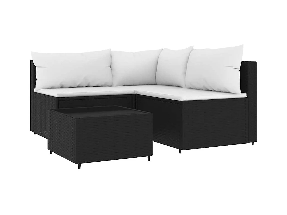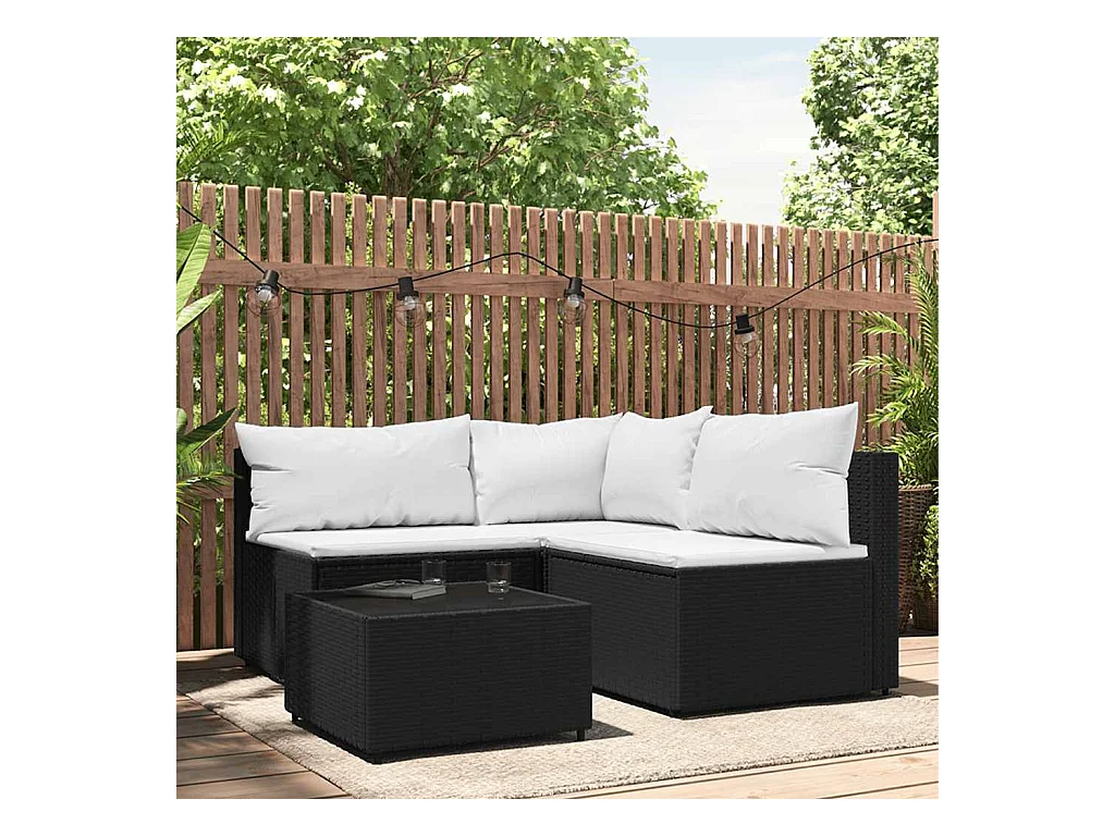 4 pcs conjunto lounge de jardim c/ almofadões vime PE preto