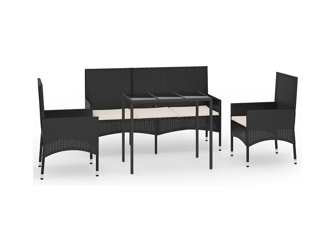 4 pcs conjunto lounge de jardim c/ almofadões vime PE preto PT57051