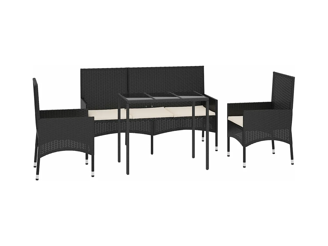 4 pcs conjunto lounge para jardim vime PE preto PT93653