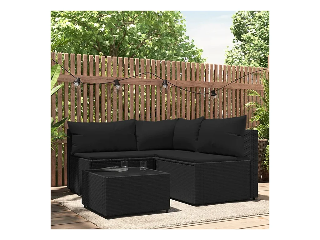 4 pcs conjunto lounge de jardim c/ almofadões vime PE preto PT907397