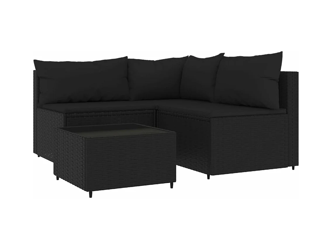 4 pcs conjunto lounge de jardim c/ almofadões vime PE preto PT837771