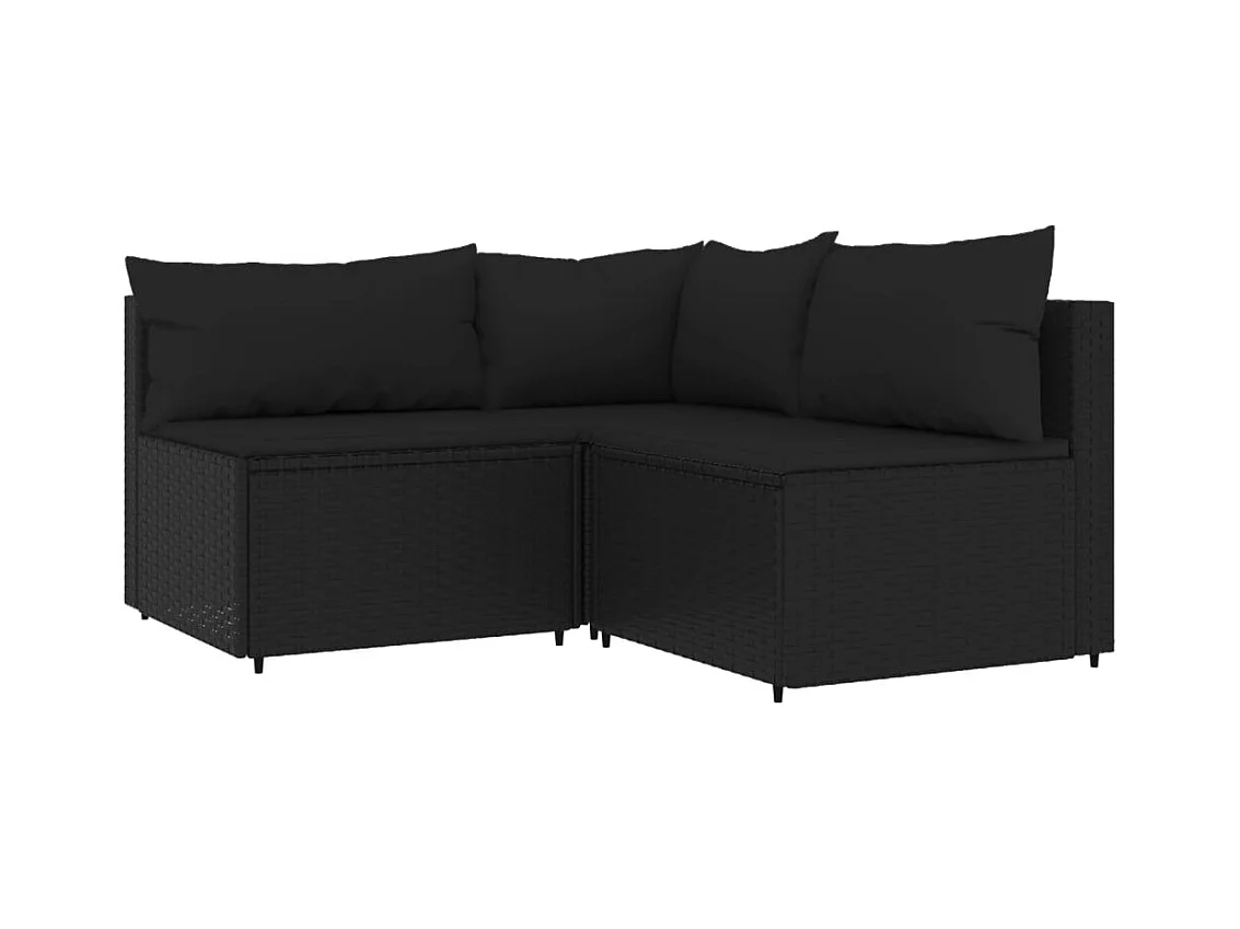 3 pcs conjunto lounge de jardim c/ almofadões vime PE preto PT543375