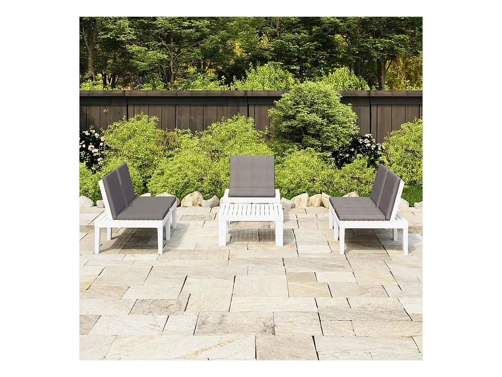 4 pcs conjunto lounge de jardim com almofadões plástico branco PT61388