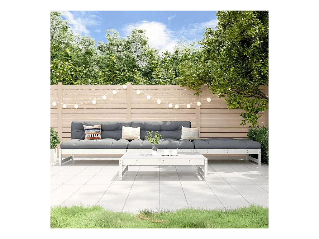 5 pcs conjunto lounge de jardim madeira de pinho maciça branco