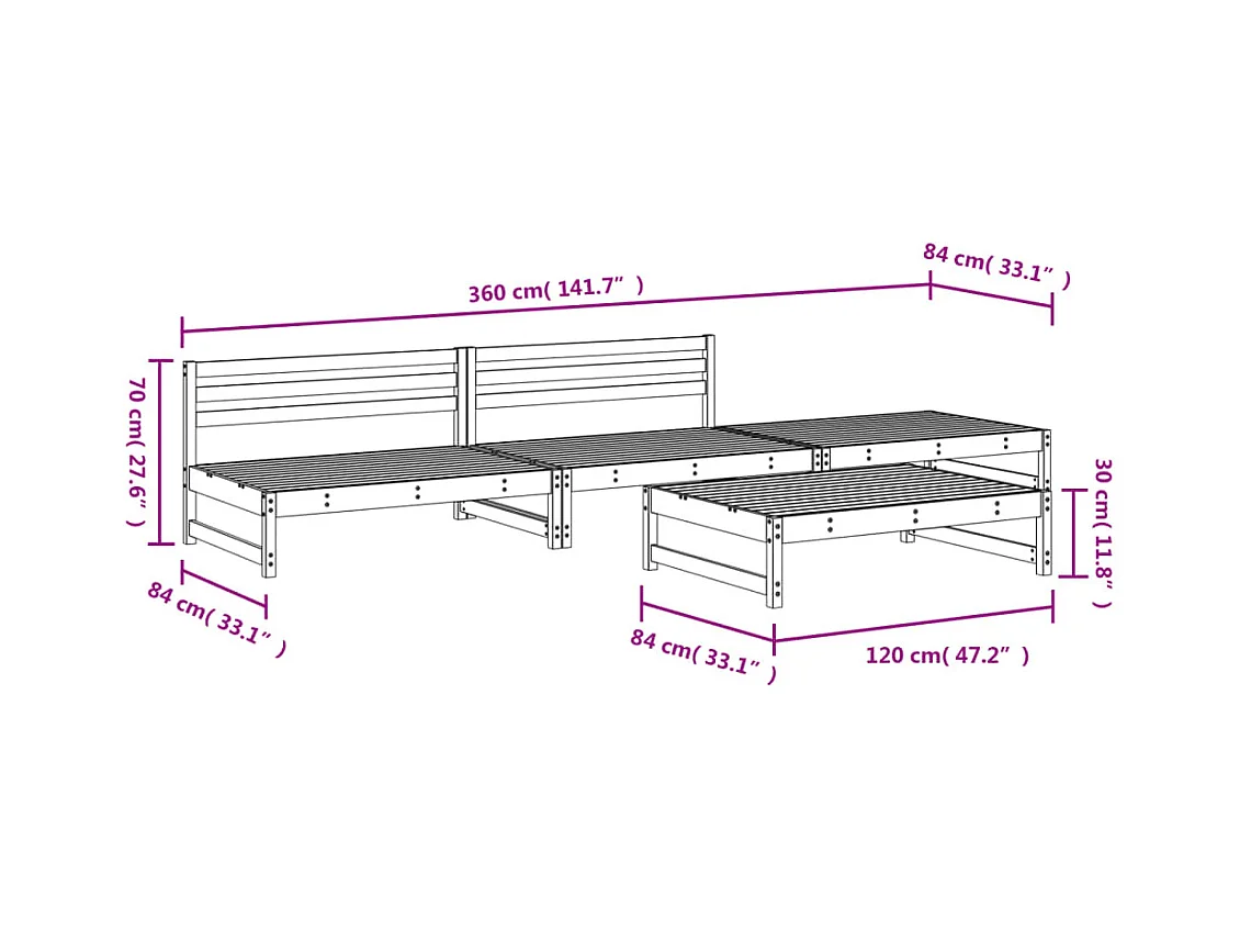4 pcs conjunto lounge de jardim madeira de pinho maciça branco