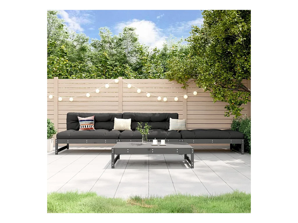 4 pcs conjunto lounge de jardim pinho maciço cinzento PT43370