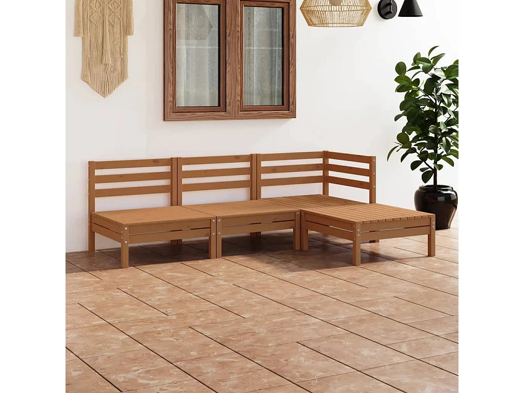 4 pcs conjunto lounge de jardim pinho maciço castanho mel