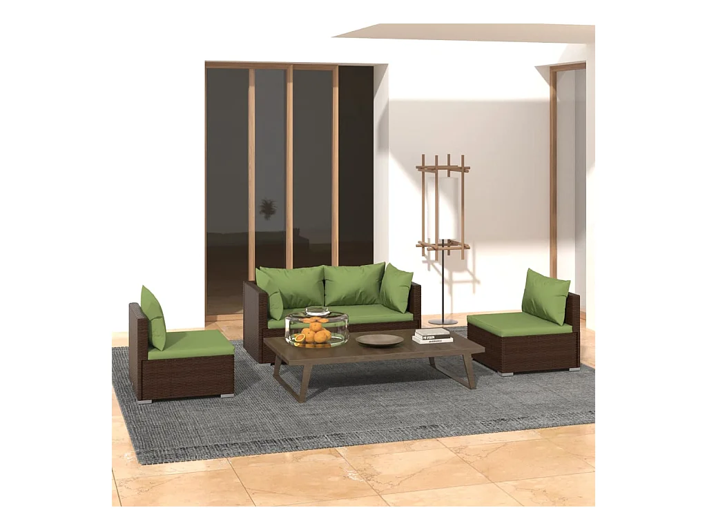 4 pcs conjunto lounge jardim c/ almofadões vime PE castanho PT19576