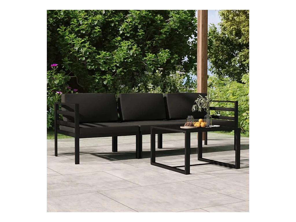 3 pcs conjunto lounge jardim com almofadões alumínio antracite